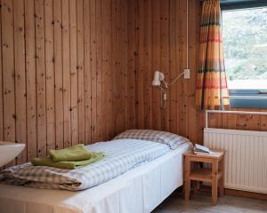 In the booking portal, you have the option to find rooms in Uppistugu or Hekken. The rooms in these sections have their own washbasin but shared shower and toilet facilities in the corridor. These are our standard rooms.